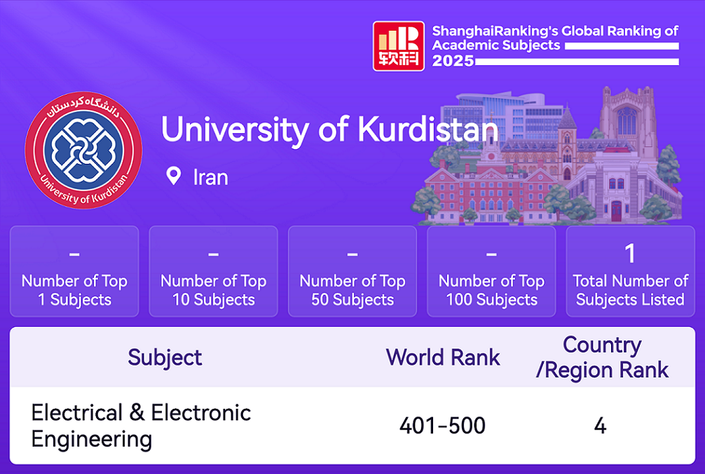 حضور دانشگاه کردستان در رتبهبندی موضوعی شانگهای ۲۰۲۵