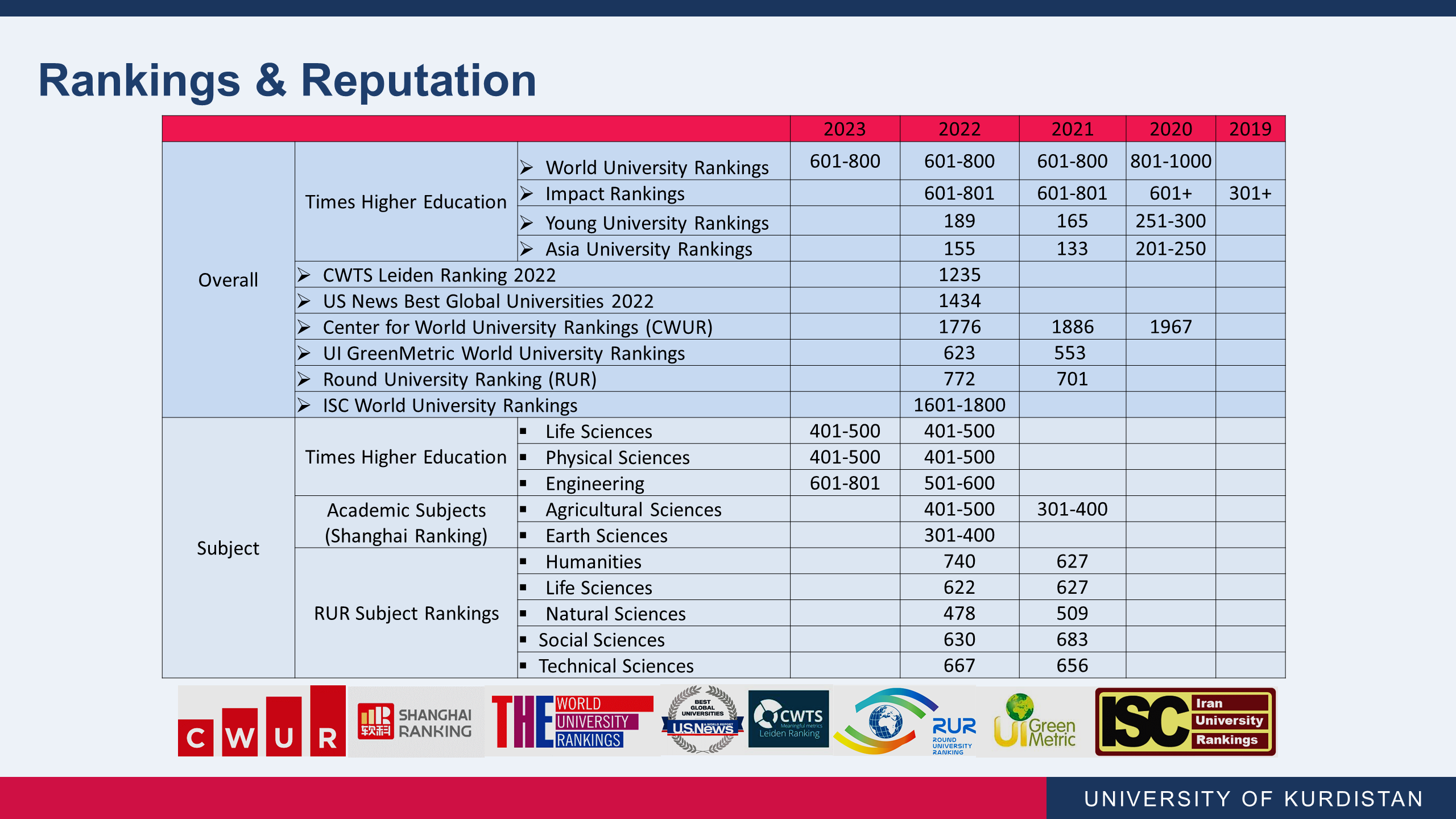 کسب رتبه 800-601 دانشگاه کردستان در رتبهبندی تاثیر تایمز2023
