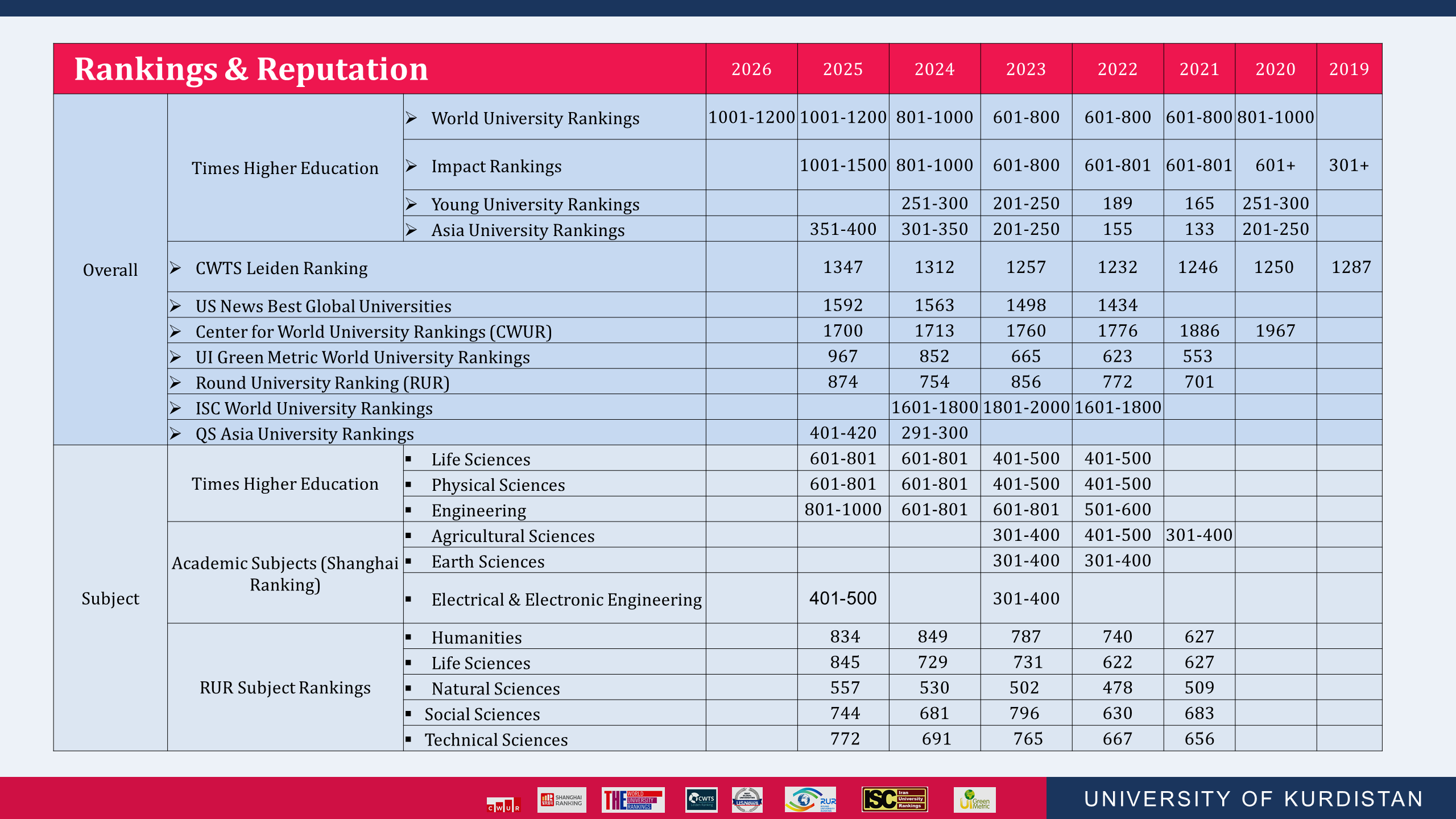 The University fo Kurdistan was ranked 301-400 in the field of natural sciences-earth sciences and ranked...
