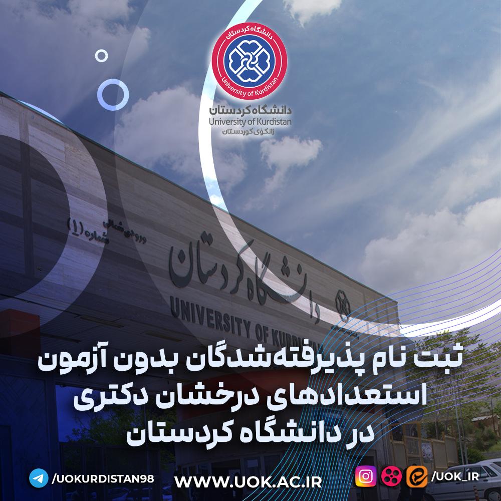 اطلاعیه ثبت نام پذیرفتهشدگان بدون آزمون استعدادهای درخشان دکتری سال 1404 در دانشگاه کردستان